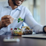- İlk olarak yulafları blenderdan çekiyoruz. Ardından fıstık ezmesi ve sütü de ekleyip güzelce karıştırıyoruz. İki küçük kasenin tabanına streç film yerleştirip üzerine pasta tabanını paylaştırıp sıkıştırıyoruz. Buzdolabında biraz bekletiyoruz.